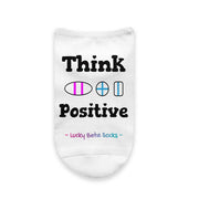 MEDIUM 1/2 Cushion No Show Socks - Sock size 9-11, the design printed on the top of each sock. 80% Cotton / 15% Nylon / 5% Spandex. Color: White.