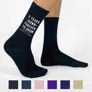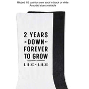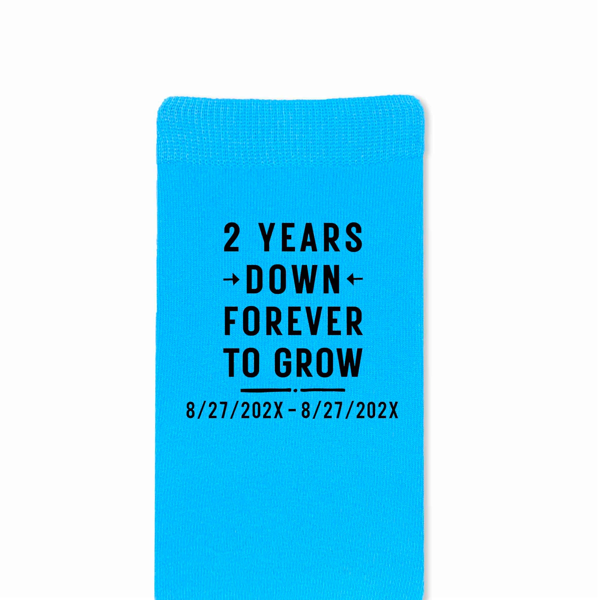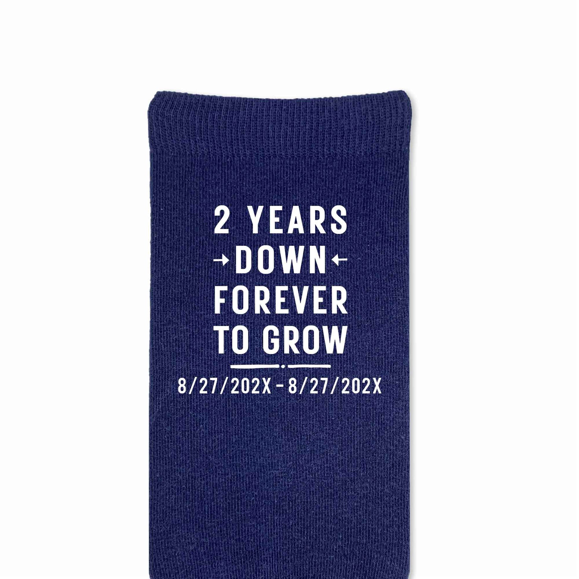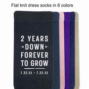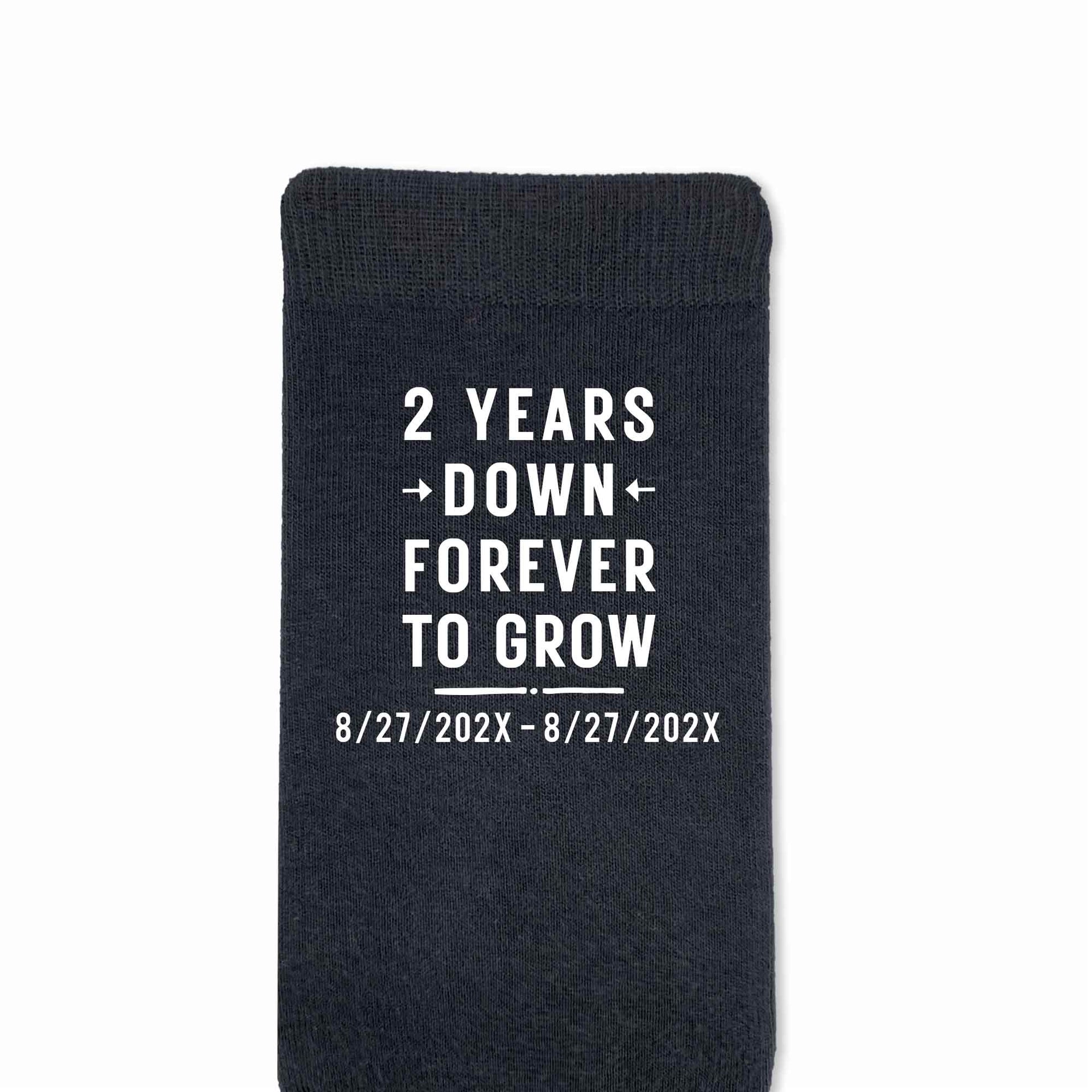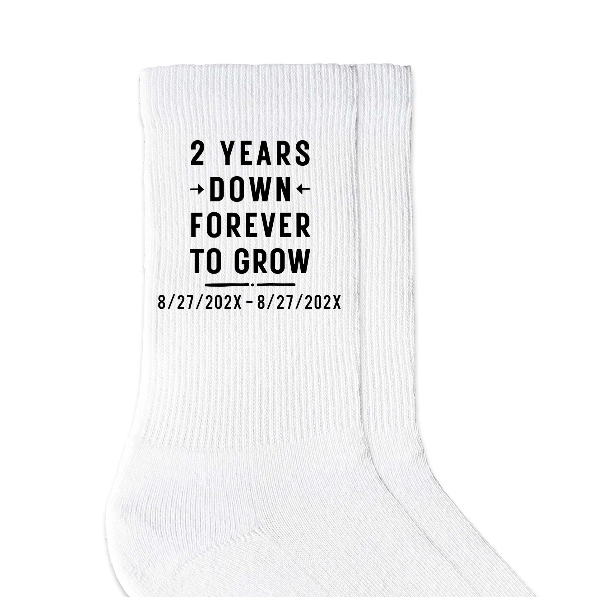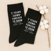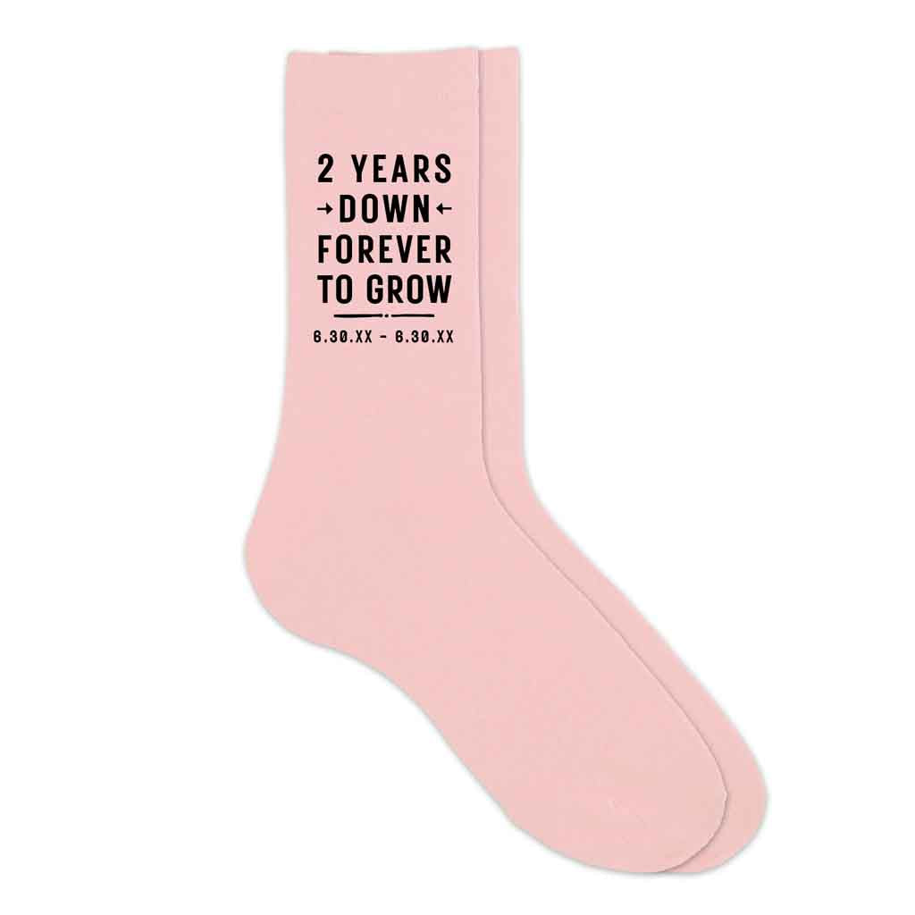 Celebrate two years of love, laughter, and growth with a modern update to one of our best-selling designs. These personalized cotton-blend anniversary socks feature the phrase “2 years down, forever to grow” along with your wedding date, printed boldly on the outside of both socks. A sentimental keepsake that’s wearable, comfortable, and designed to last.