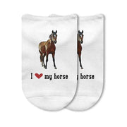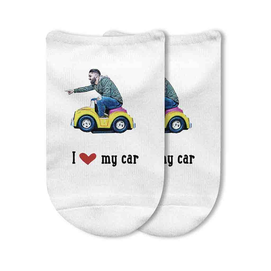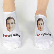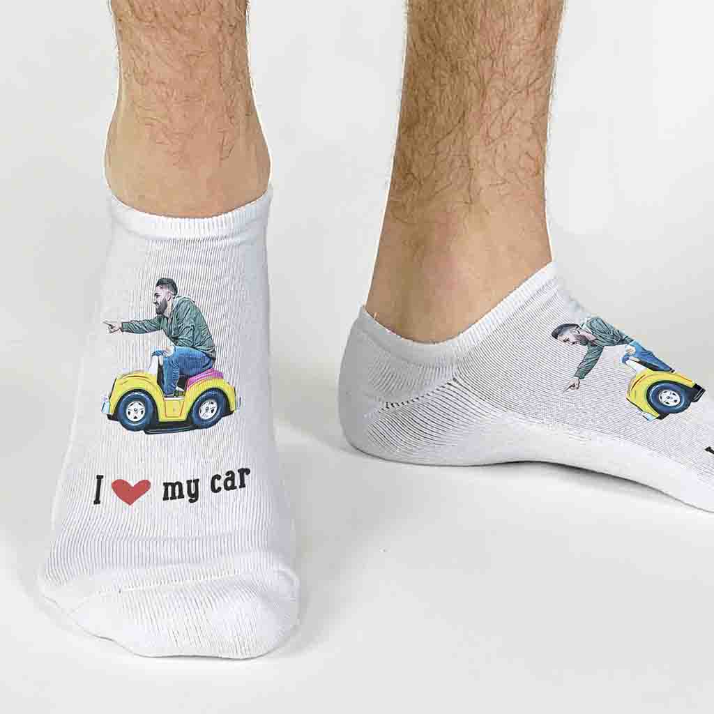 Celebrate your love for anything or anyone with our custom no-show socks featuring a cartoonized photo of your kitty and "I ❤️ my" with your custom text printed below. These comfy cotton socks make a thoughtful and fun gift for anyone!