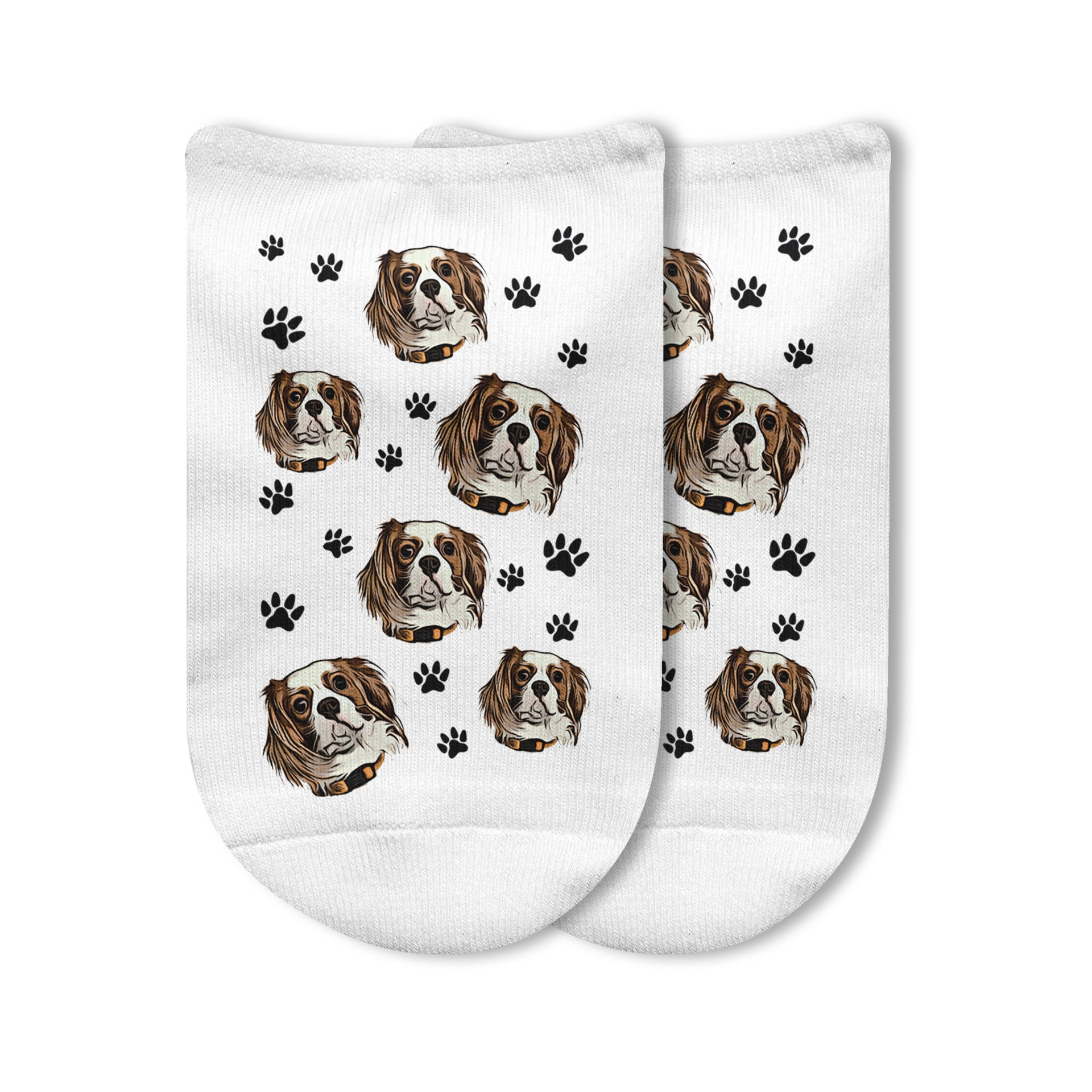 Looking for a "paw-some" gift for the pet lovers in your life? Our custom photo no-show socks feature a fun "cartoon" effect of their pet’s photo with an adorable paw print design. Perfect for any dog or cat parent, these playful socks add a personal touch to gift giving, and are an affordable, thoughtful way to make someone’s day!