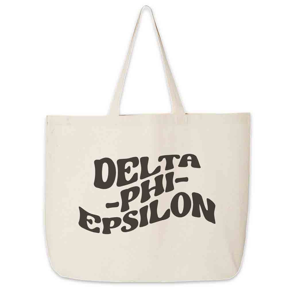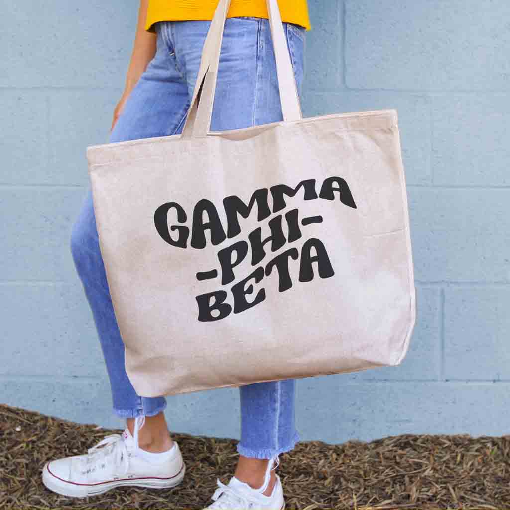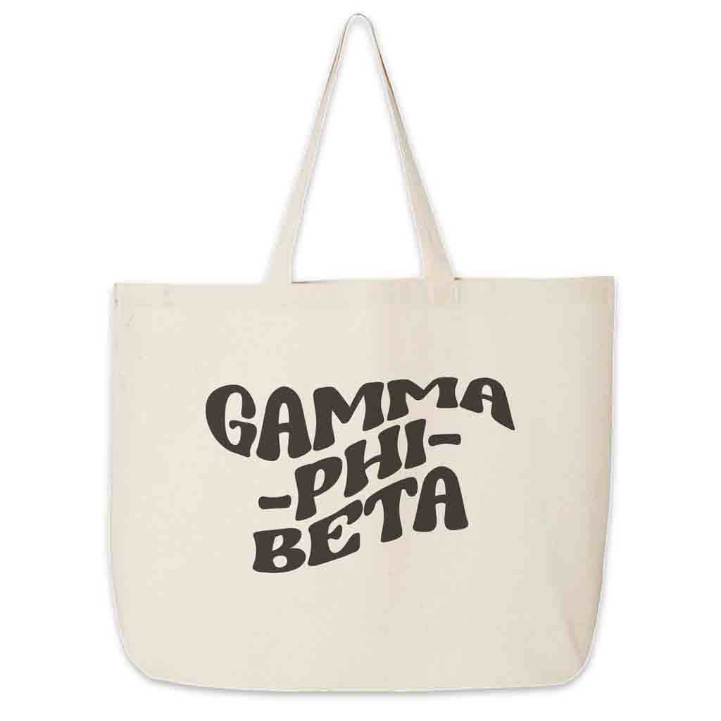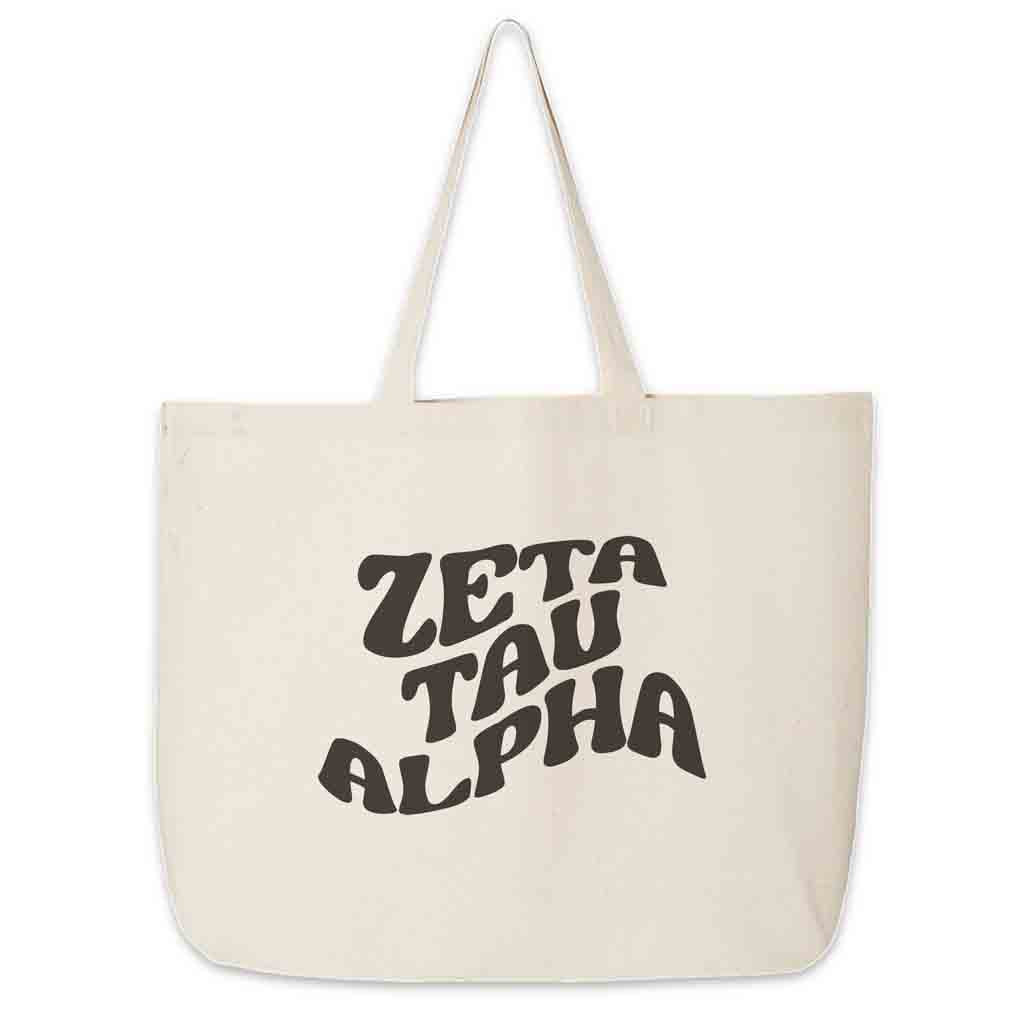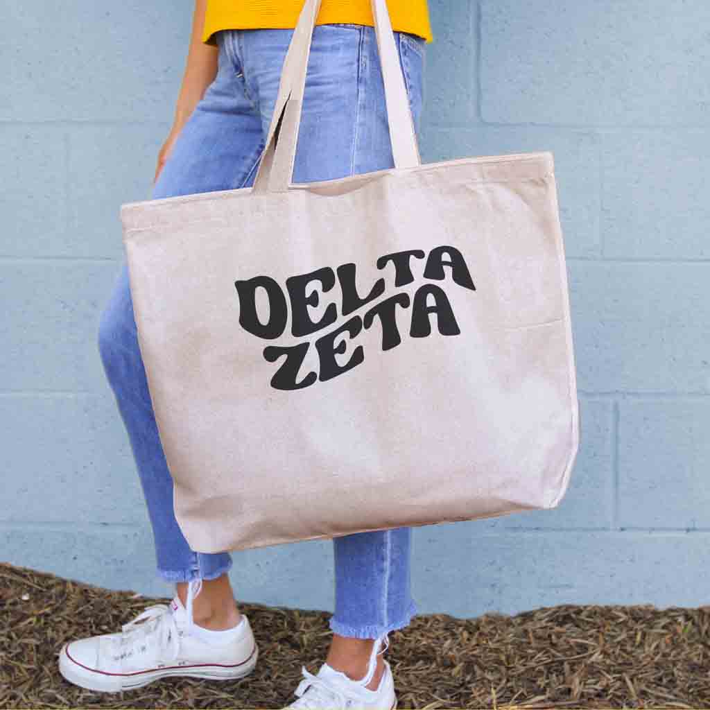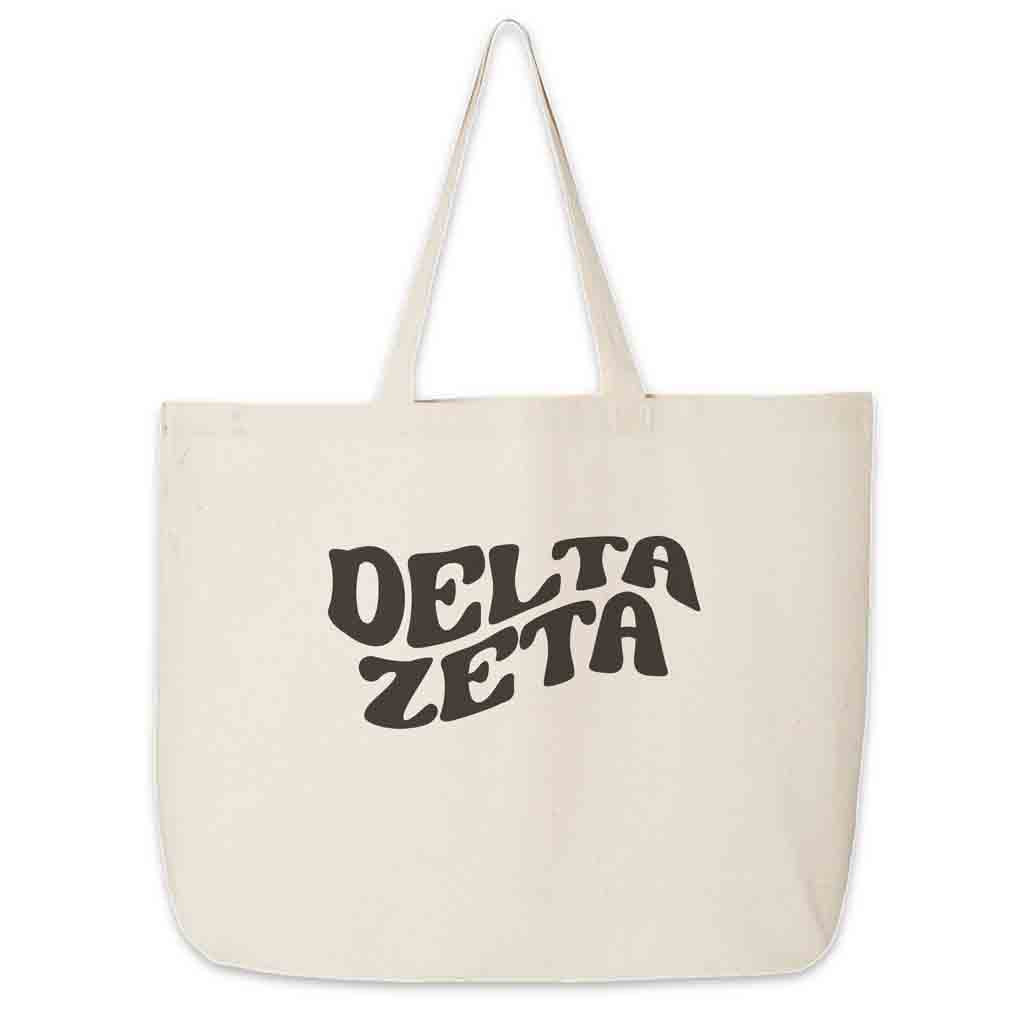 When you want to stand out, nothing makes a statement like our stylish sorority tote bag! Crafted from natural canvas, this eye-catching sorority tote features a fun retro mod design, 23" web canvas handles, a 10" handle drop, and a spacious bottom gusset. Whether you're heading to campus or out on a shopping spree, this tote bag is the perfect accessory for any occasion.