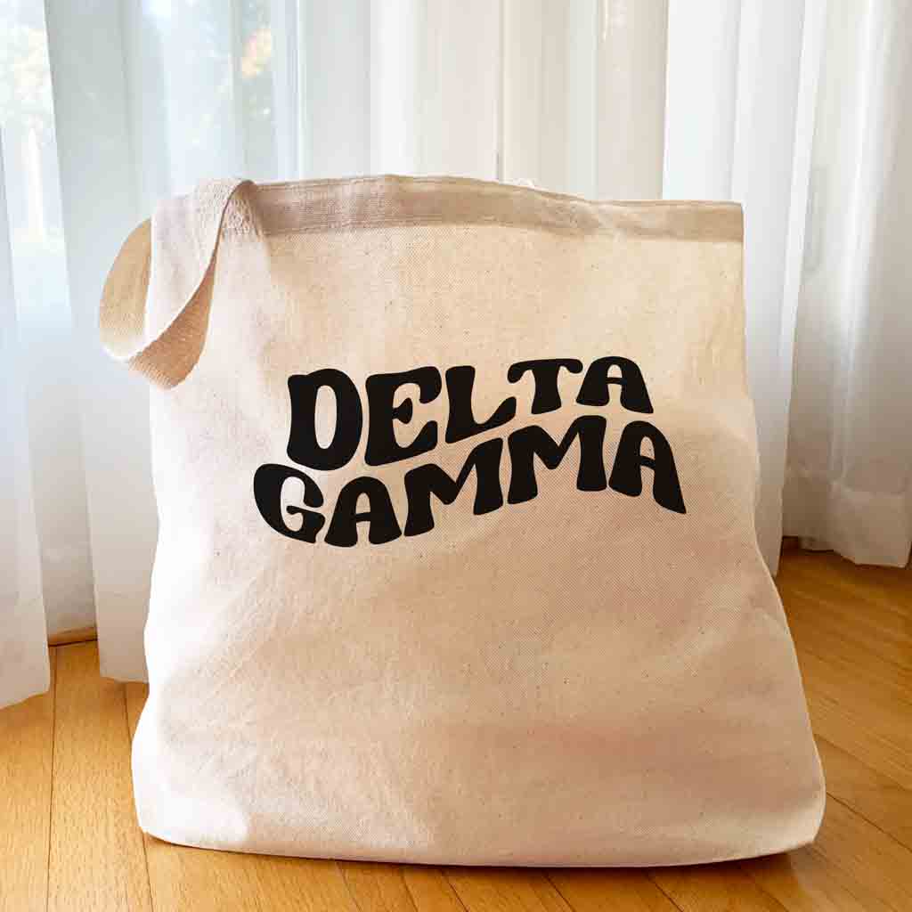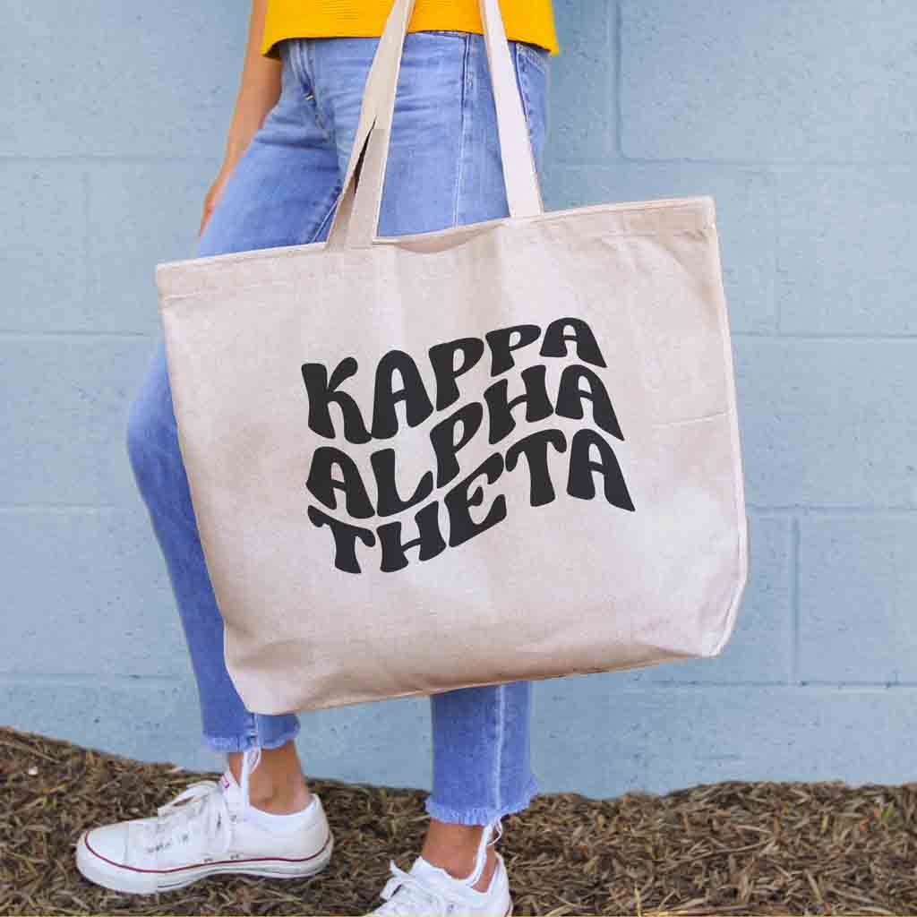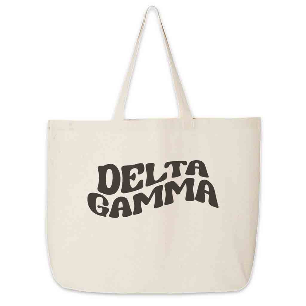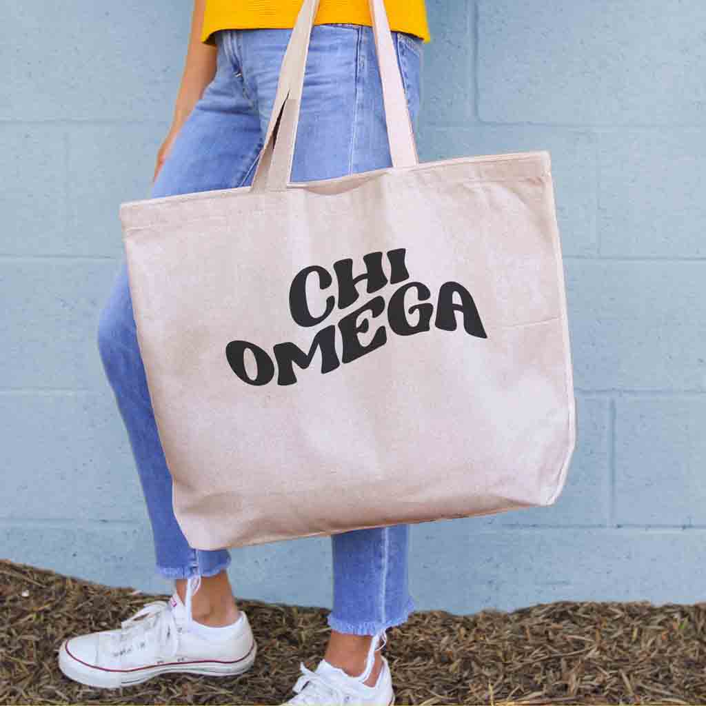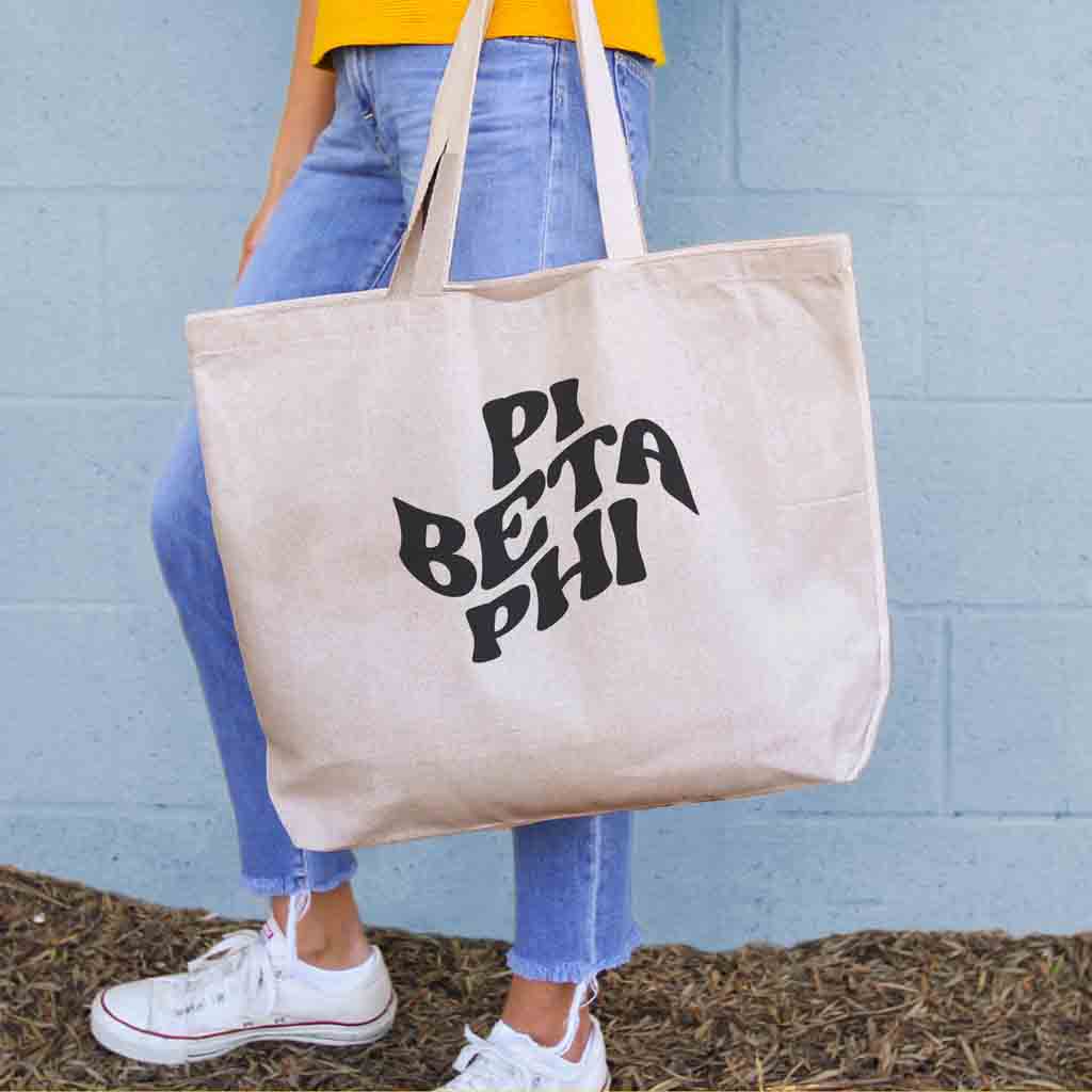 When you want to stand out, nothing makes a statement like our stylish sorority tote bag! Crafted from natural canvas, this eye-catching sorority tote features a fun retro mod design, 23" web canvas handles, a 10" handle drop, and a spacious bottom gusset. Whether you're heading to campus or out on a shopping spree, this tote bag is the perfect accessory for any occasion.