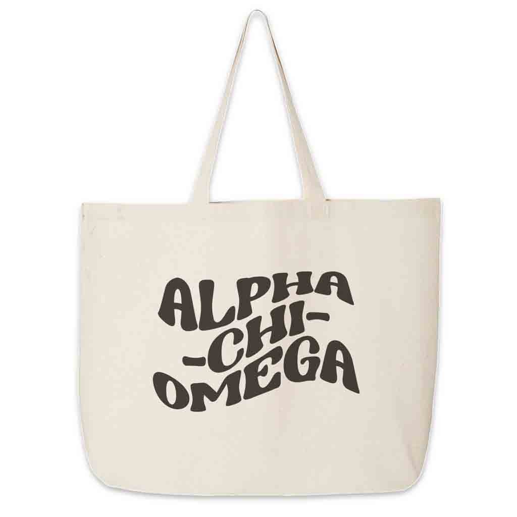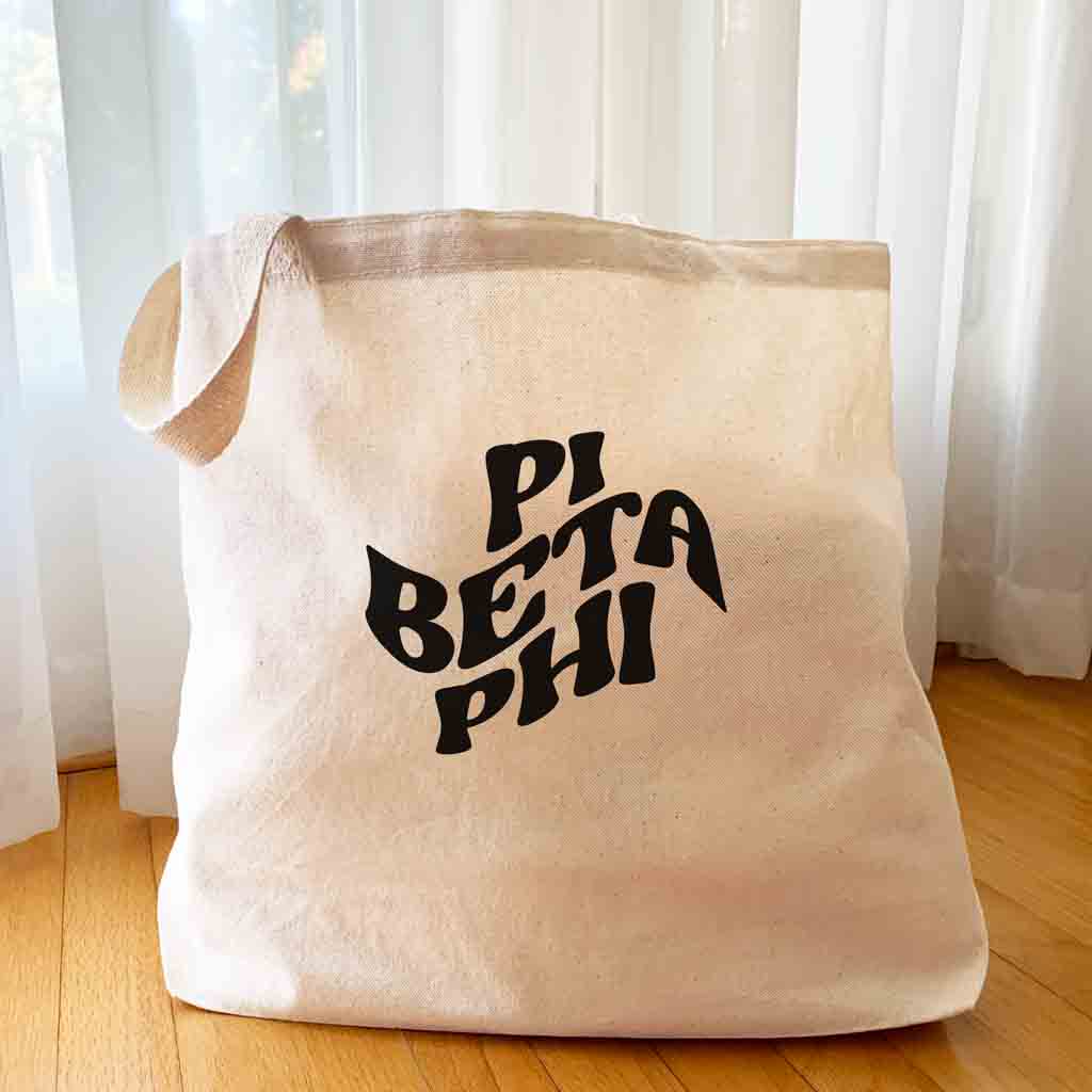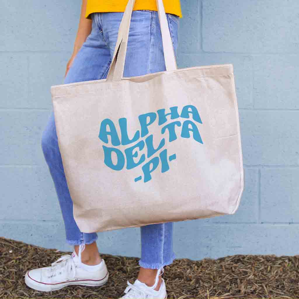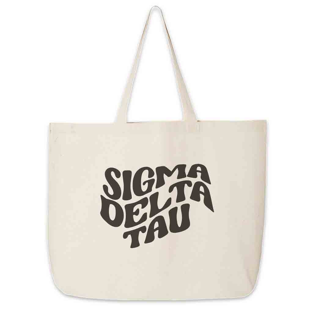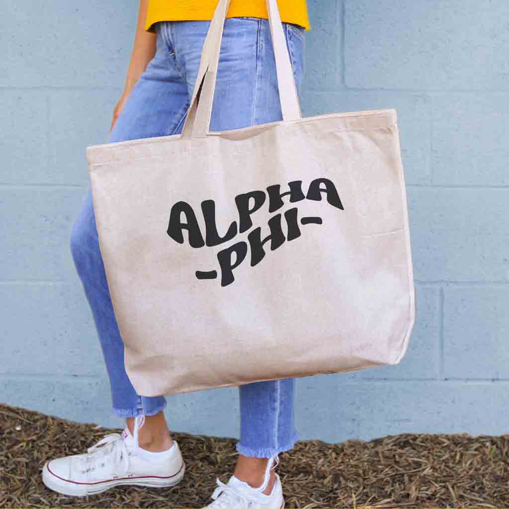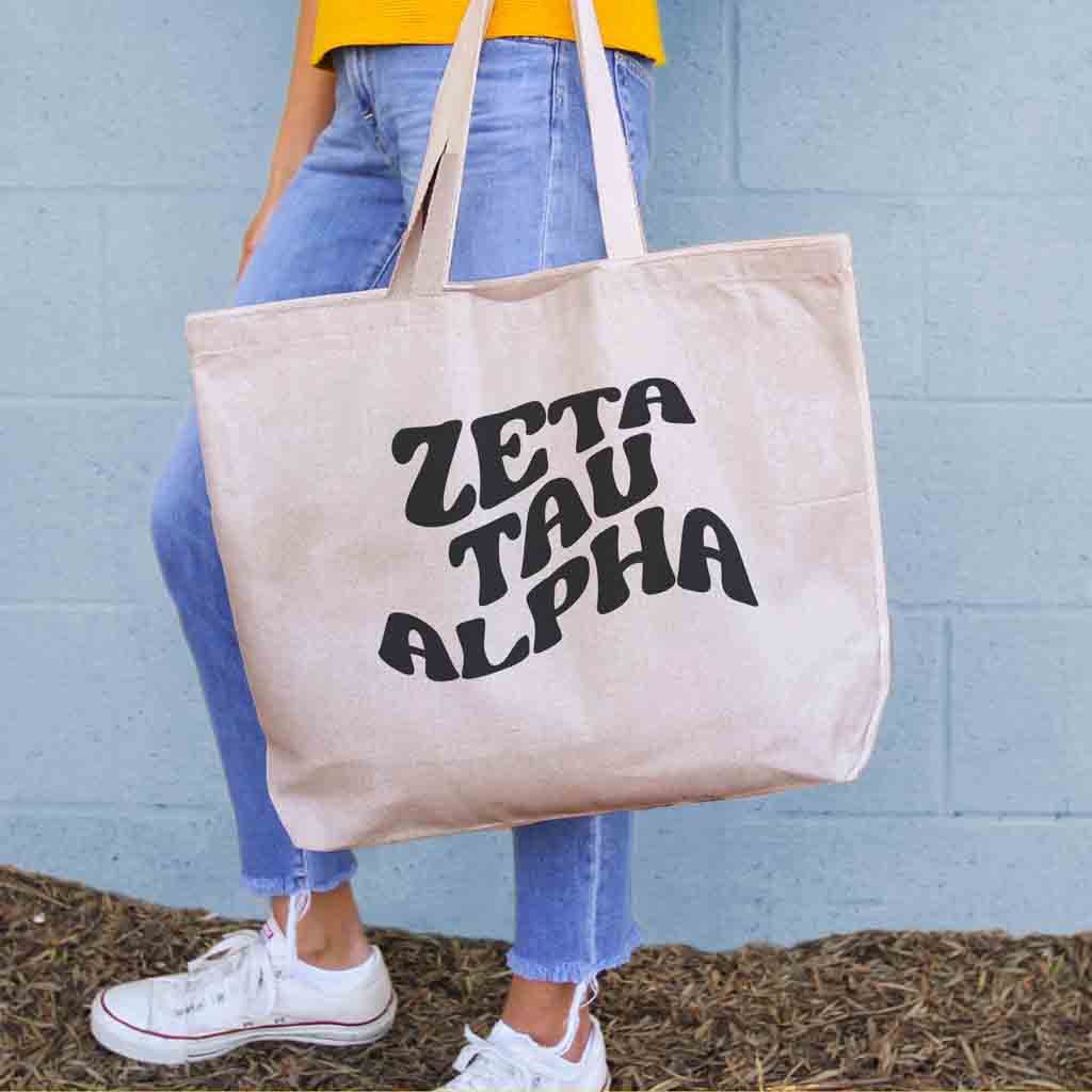 When you want to stand out, nothing makes a statement like our stylish sorority tote bag! Crafted from natural canvas, this eye-catching sorority tote features a fun retro mod design, 23" web canvas handles, a 10" handle drop, and a spacious bottom gusset. Whether you're heading to campus or out on a shopping spree, this tote bag is the perfect accessory for any occasion.