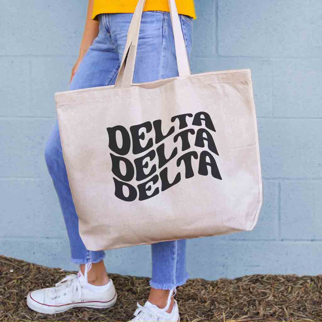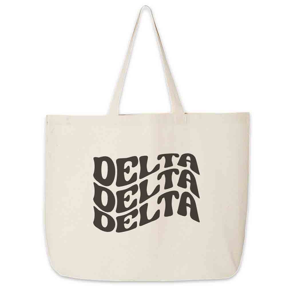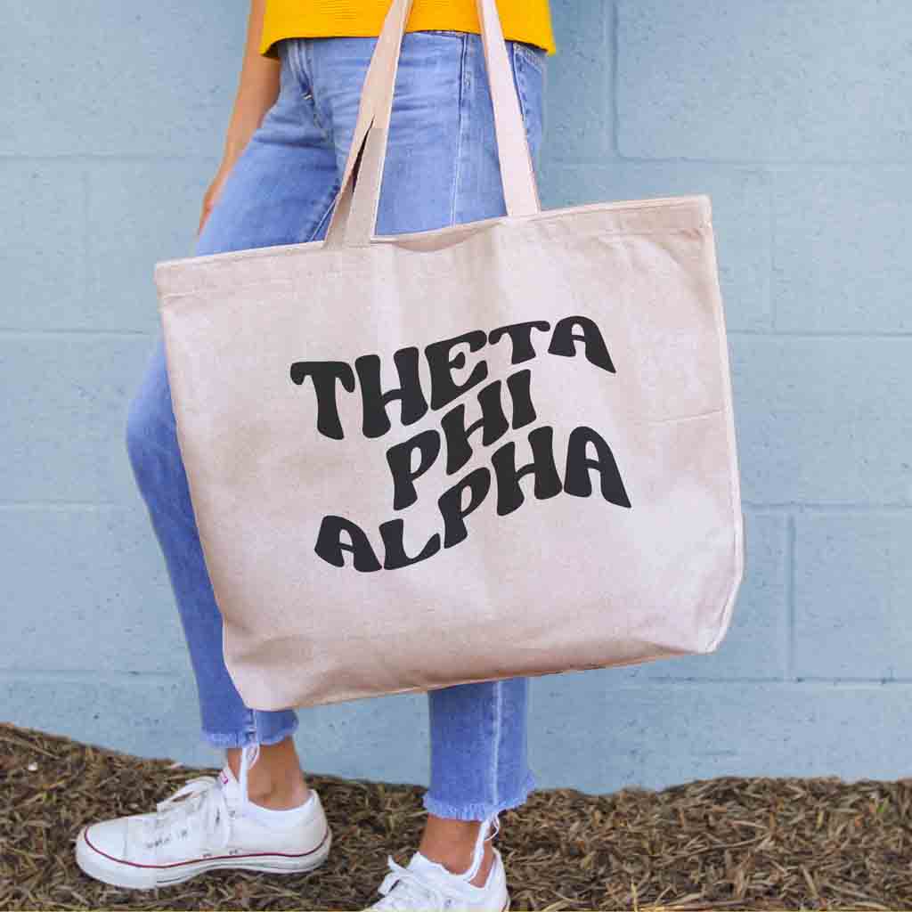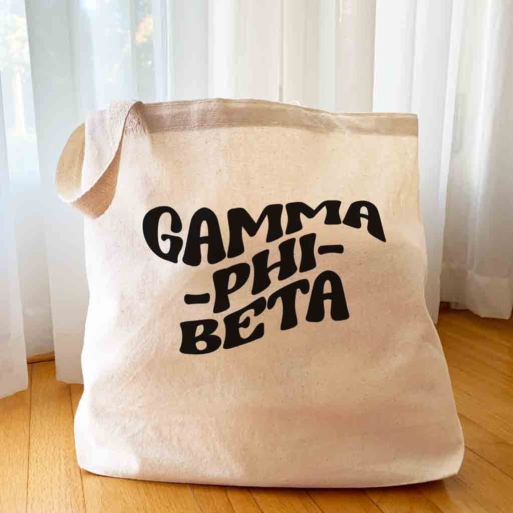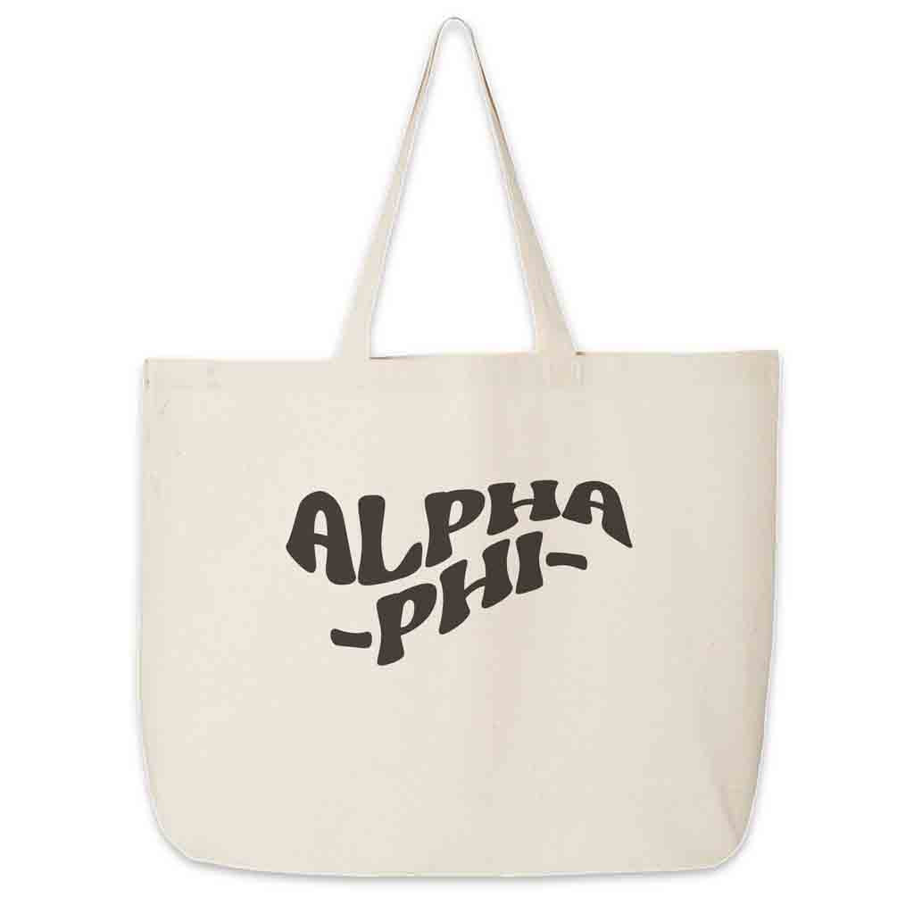 When you want to stand out, nothing makes a statement like our stylish sorority tote bag! Crafted from natural canvas, this eye-catching sorority tote features a fun retro mod design, 23" web canvas handles, a 10" handle drop, and a spacious bottom gusset. Whether you're heading to campus or out on a shopping spree, this tote bag is the perfect accessory for any occasion.