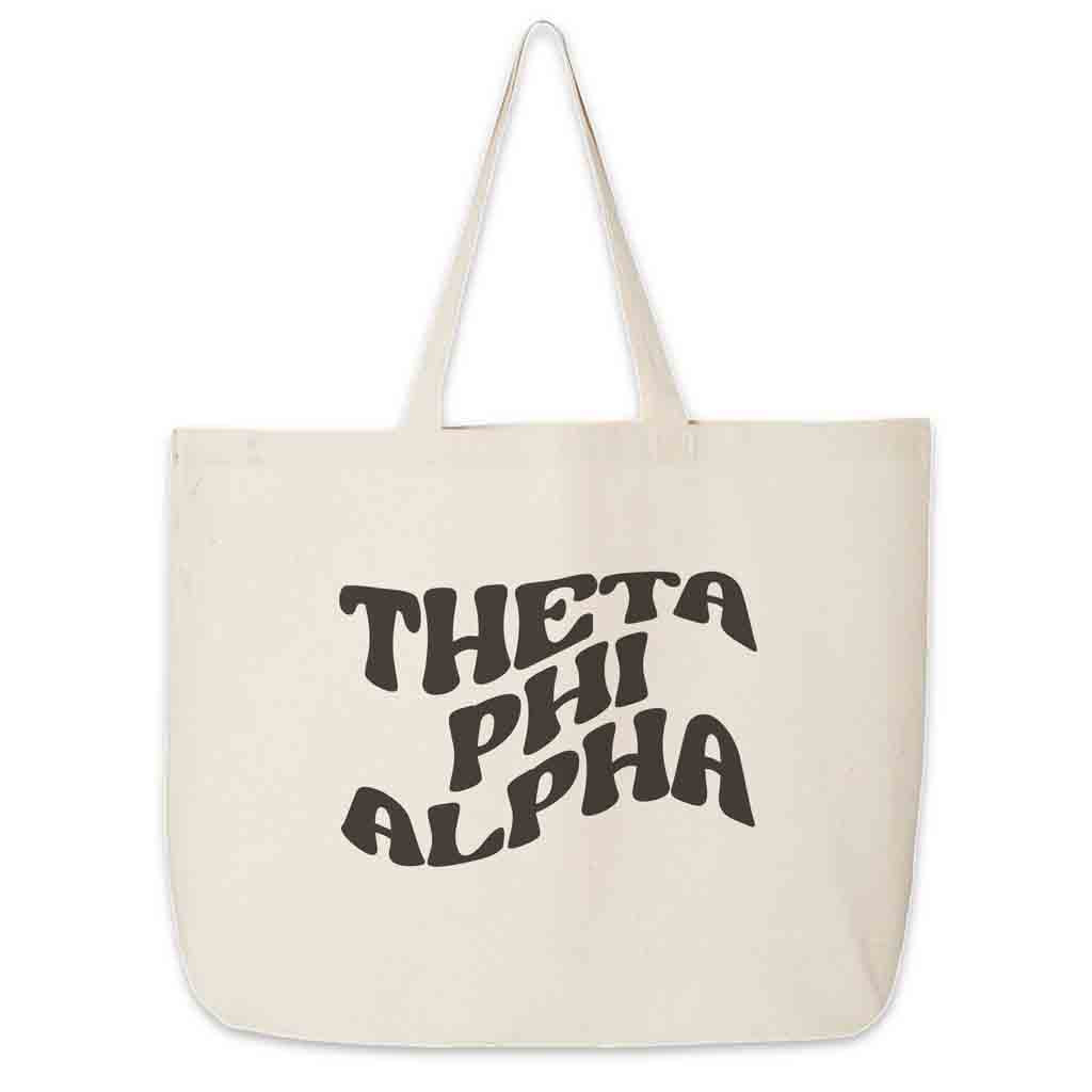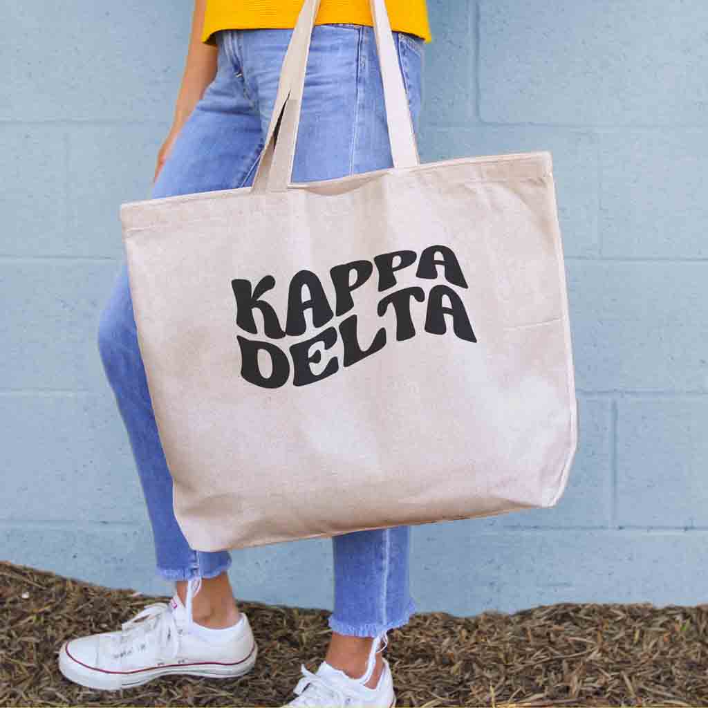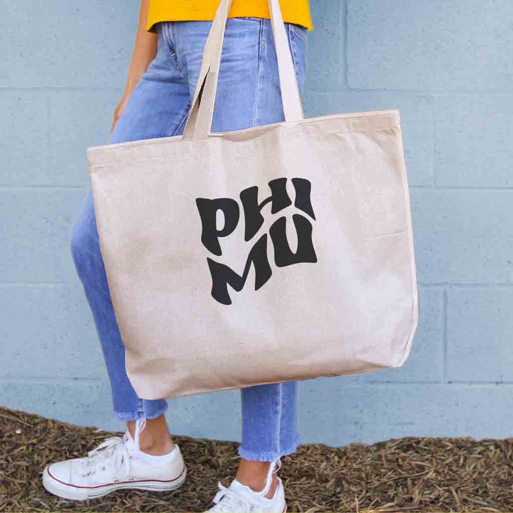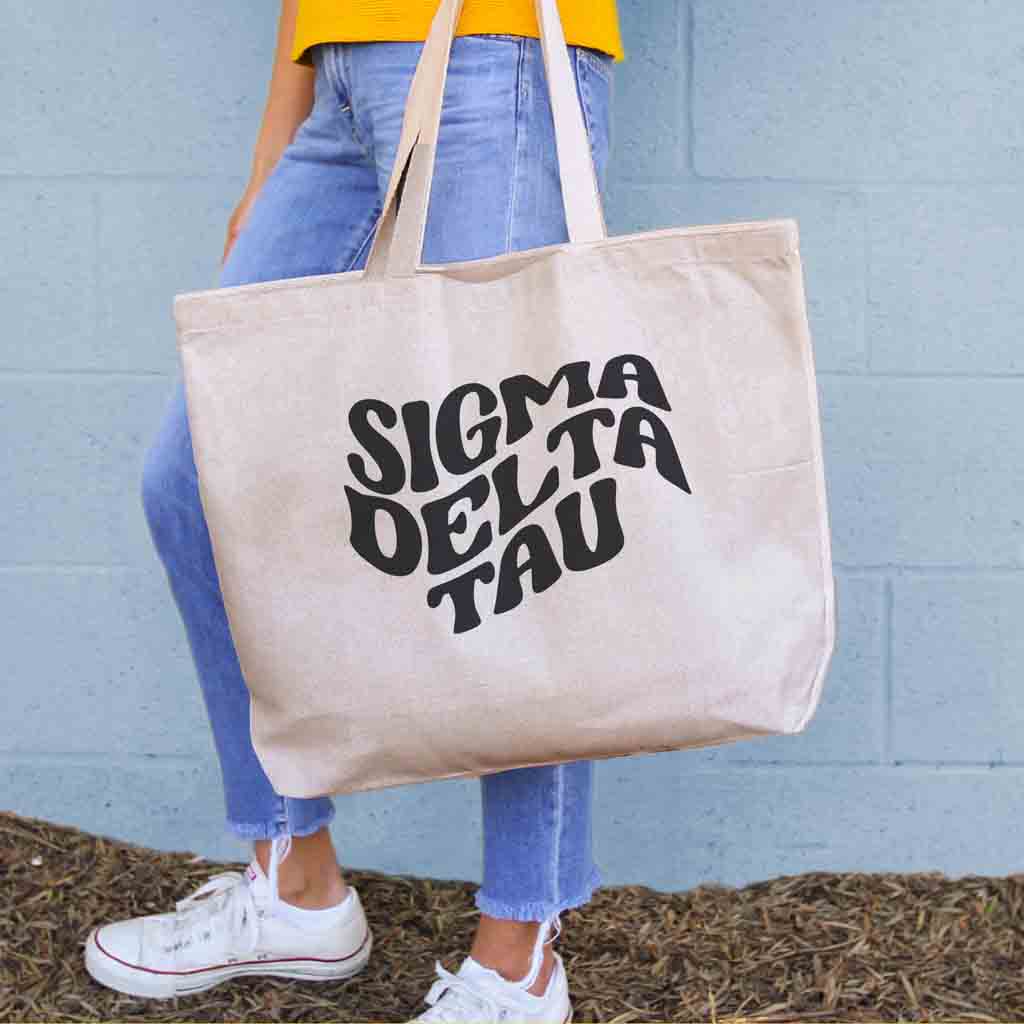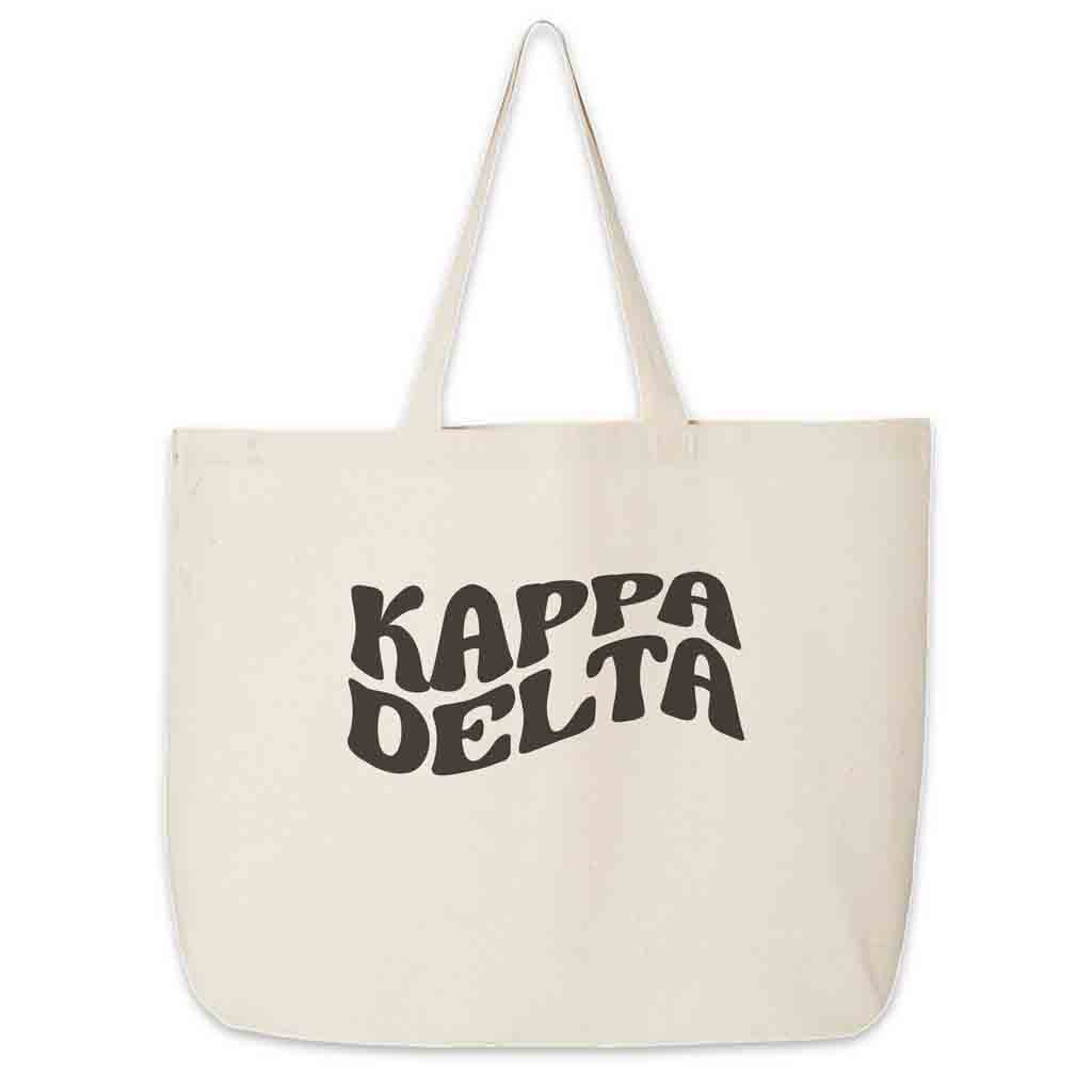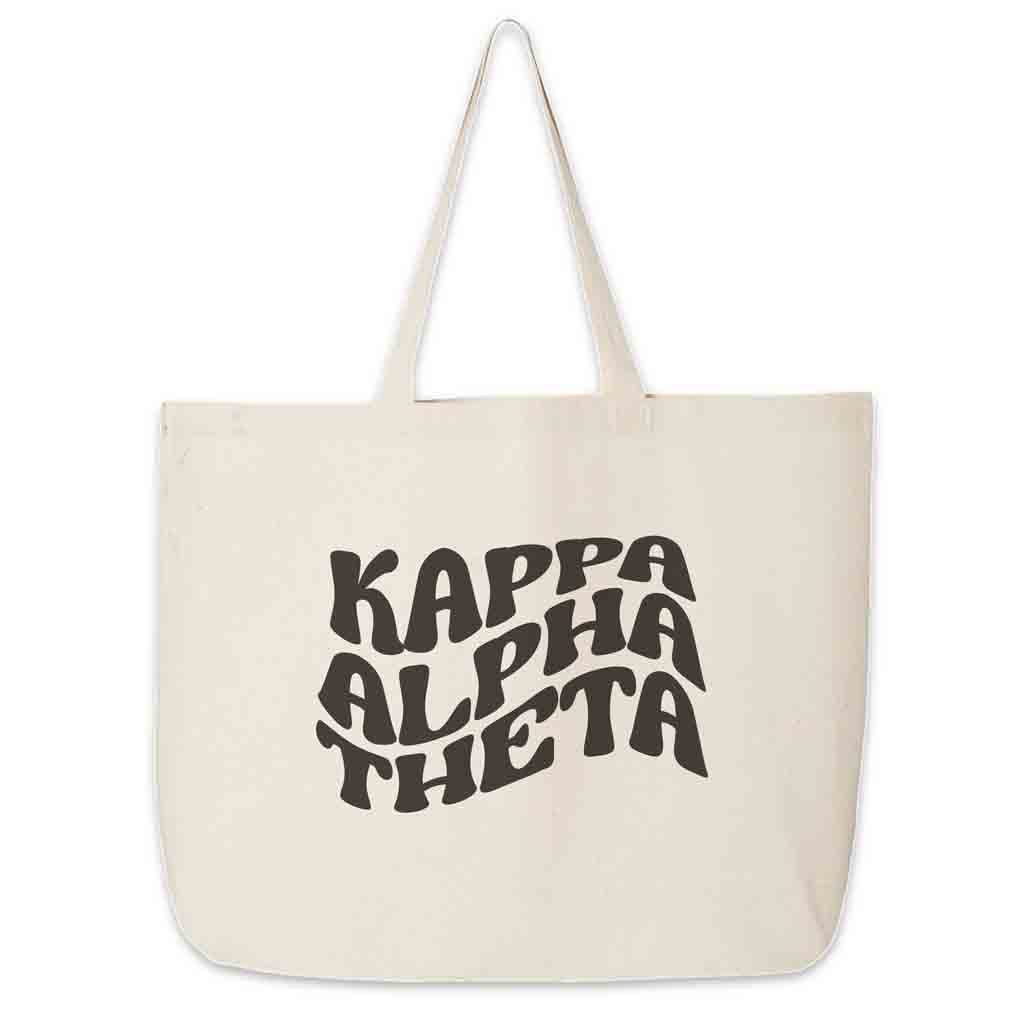 When you want to stand out, nothing makes a statement like our stylish sorority tote bag! Crafted from natural canvas, this eye-catching sorority tote features a fun retro mod design, 23" web canvas handles, a 10" handle drop, and a spacious bottom gusset. Whether you're heading to campus or out on a shopping spree, this tote bag is the perfect accessory for any occasion.