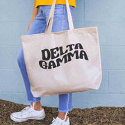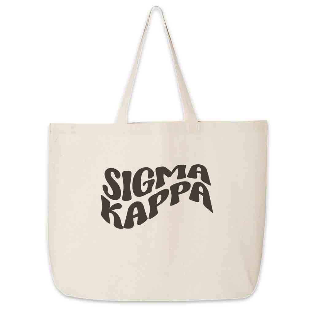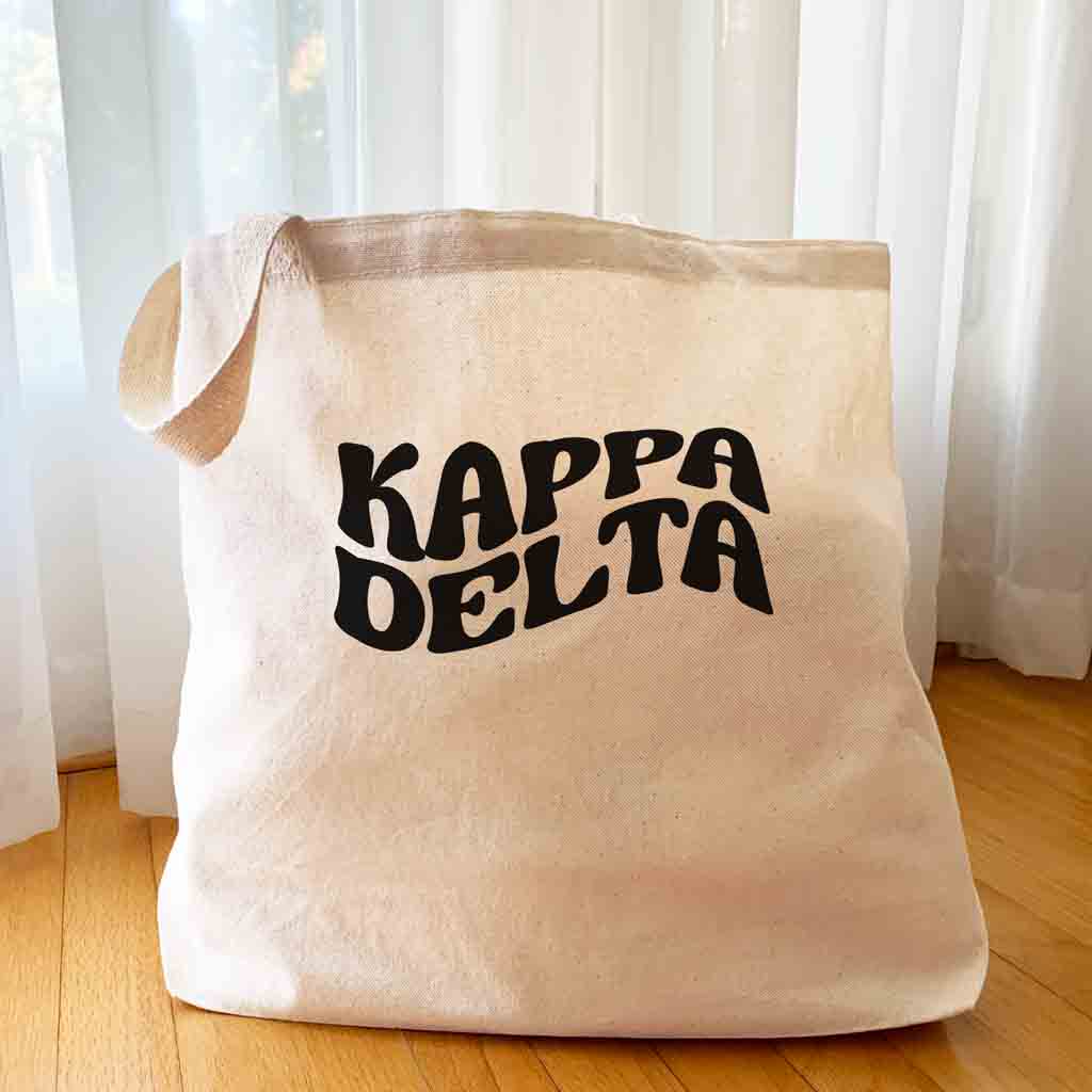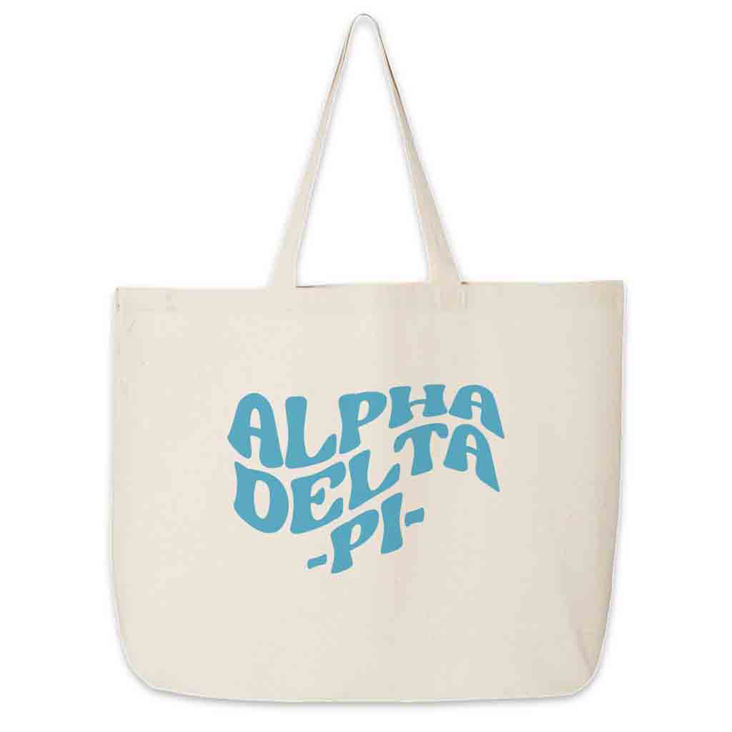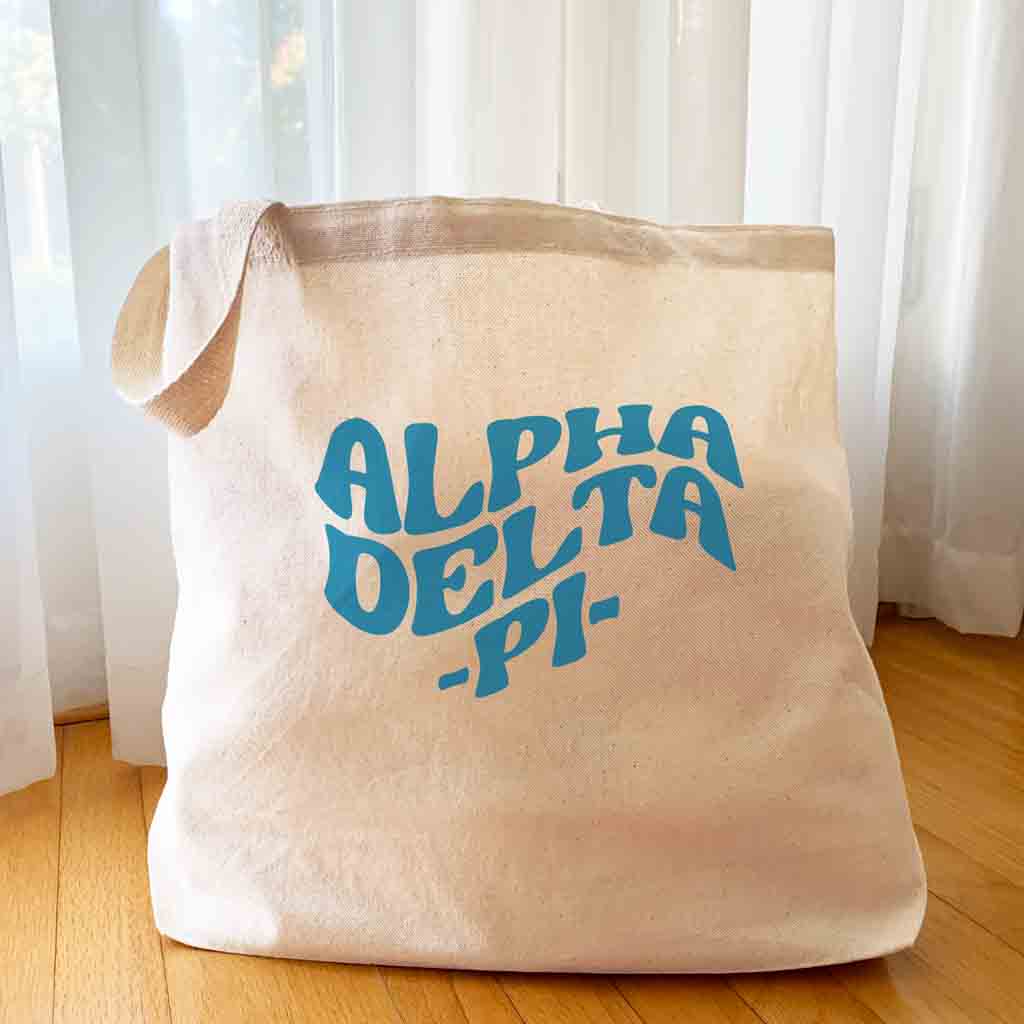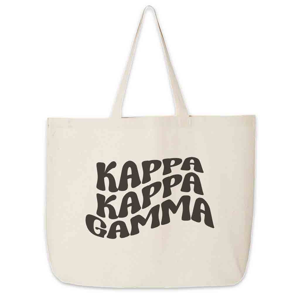 When you want to stand out, nothing makes a statement like our stylish sorority tote bag! Crafted from natural canvas, this eye-catching sorority tote features a fun retro mod design, 23" web canvas handles, a 10" handle drop, and a spacious bottom gusset. Whether you're heading to campus or out on a shopping spree, this tote bag is the perfect accessory for any occasion.