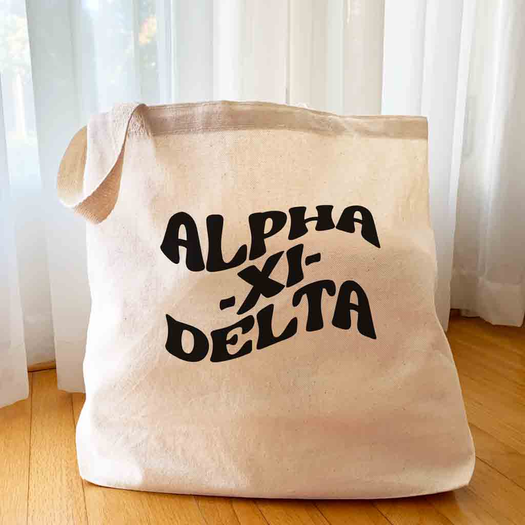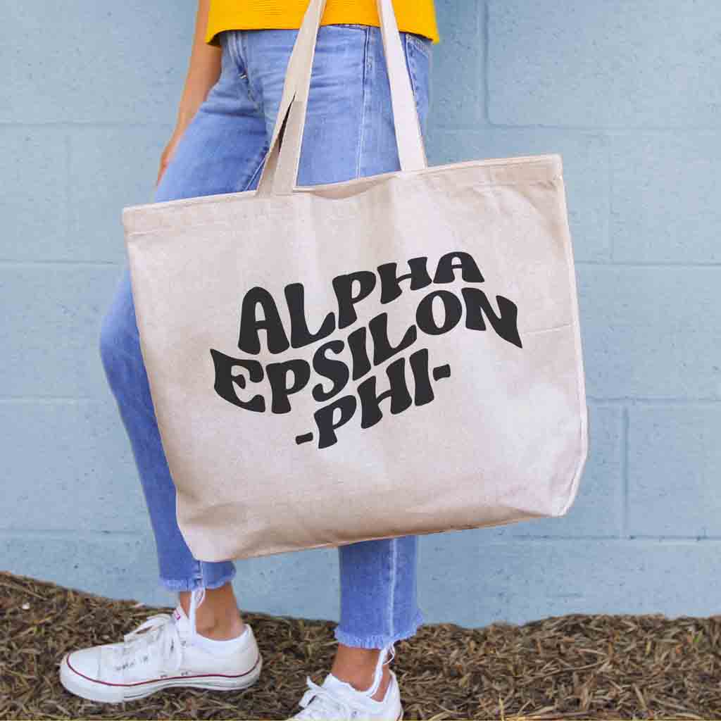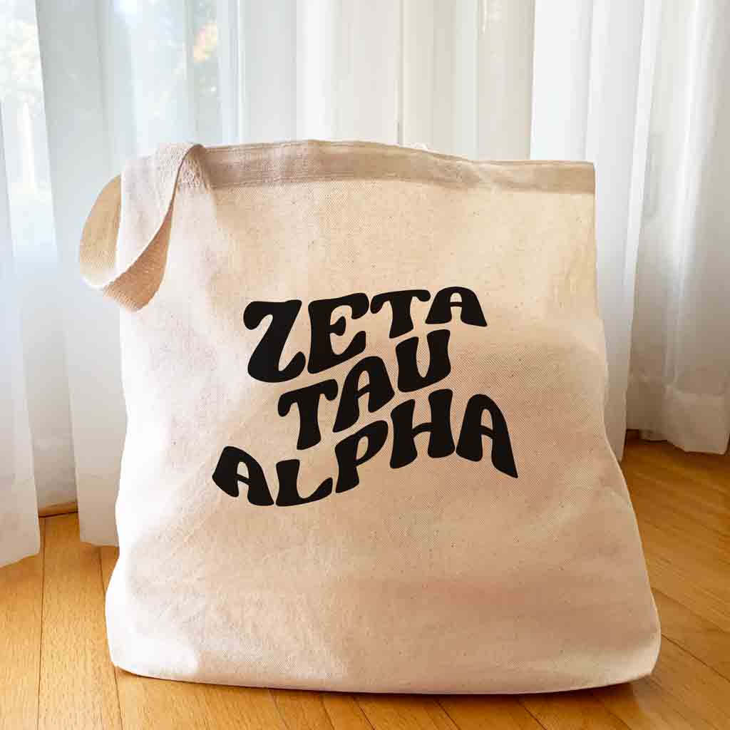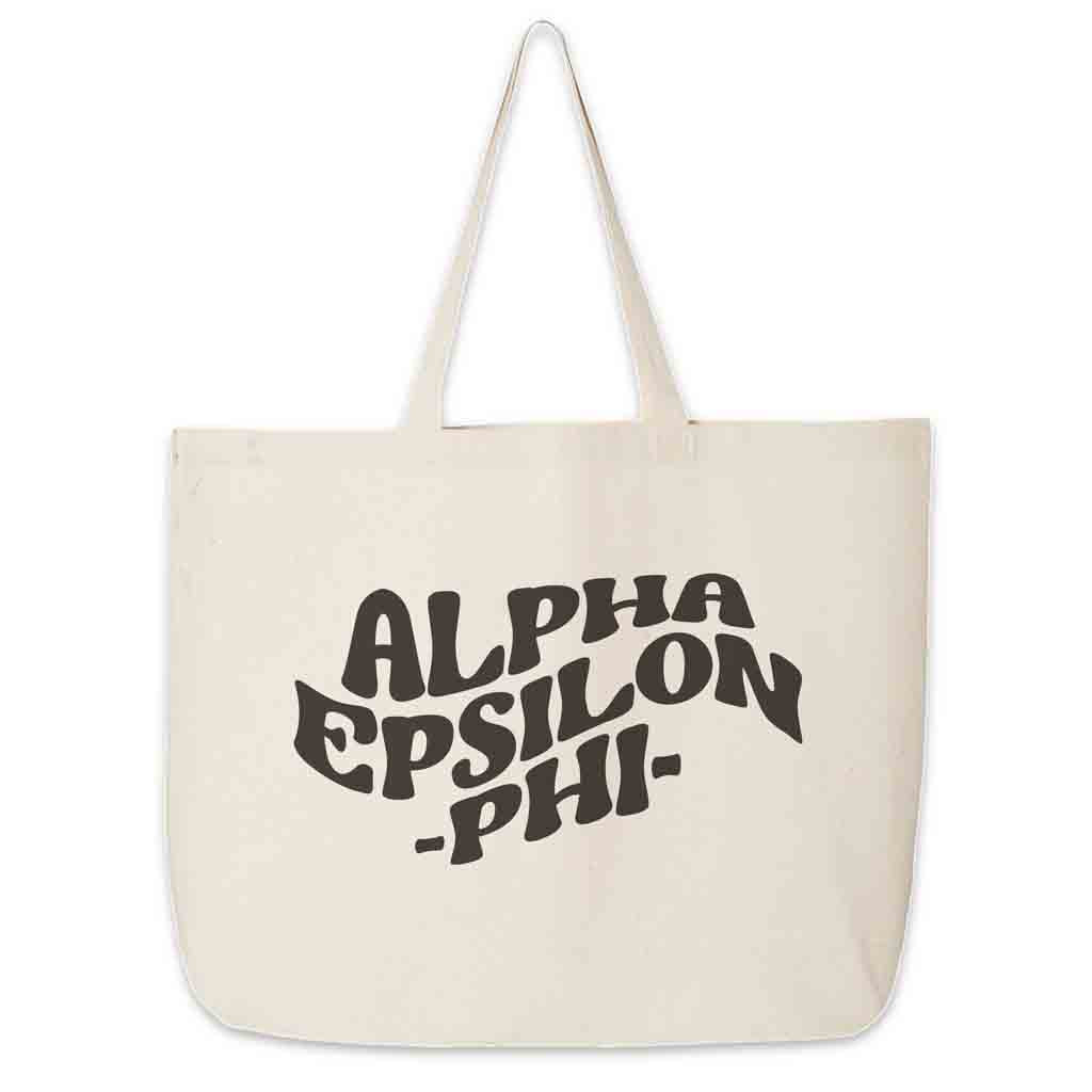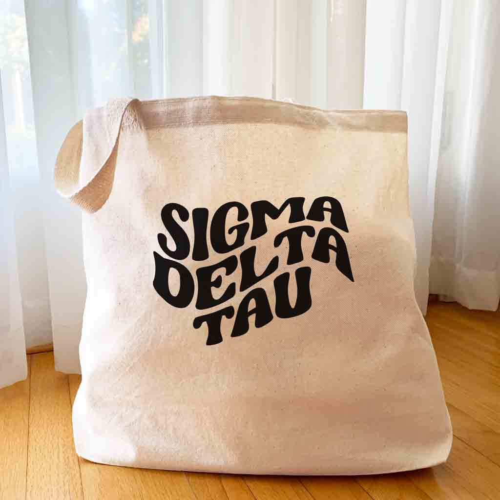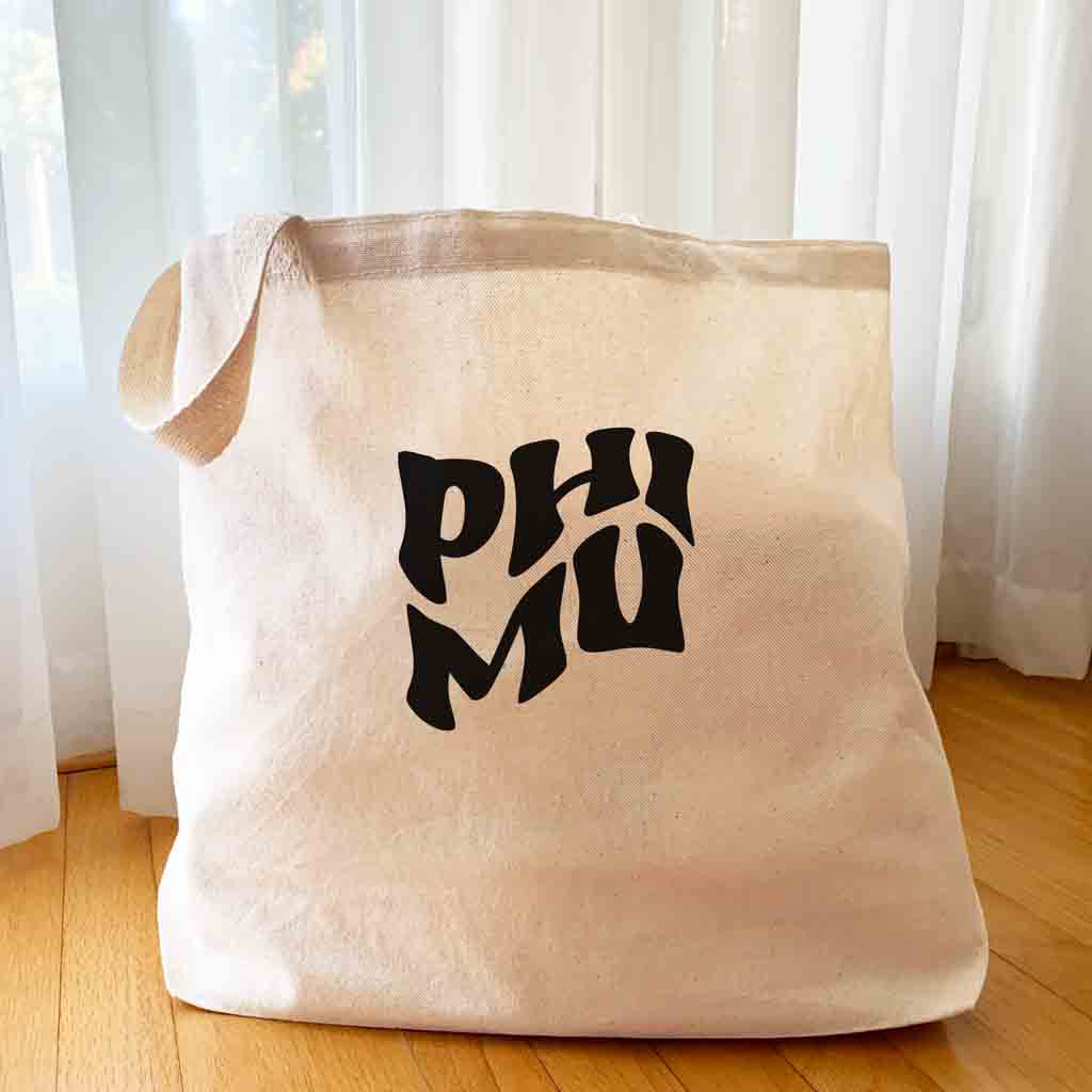 When you want to stand out, nothing makes a statement like our stylish sorority tote bag! Crafted from natural canvas, this eye-catching sorority tote features a fun retro mod design, 23" web canvas handles, a 10" handle drop, and a spacious bottom gusset. Whether you're heading to campus or out on a shopping spree, this tote bag is the perfect accessory for any occasion.
