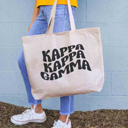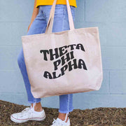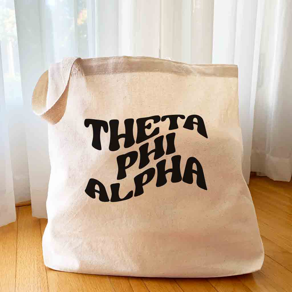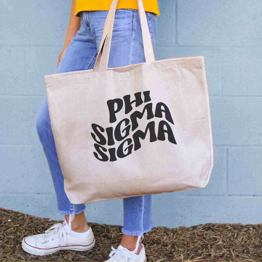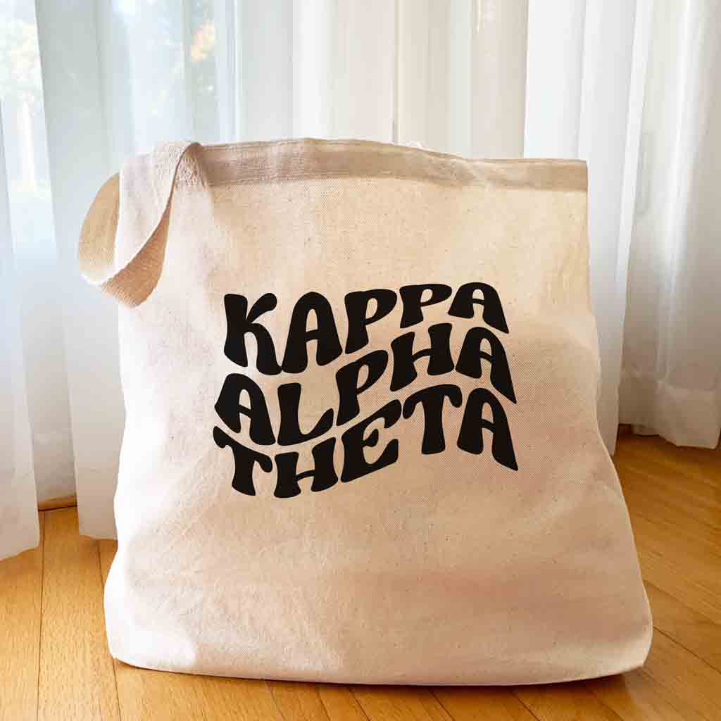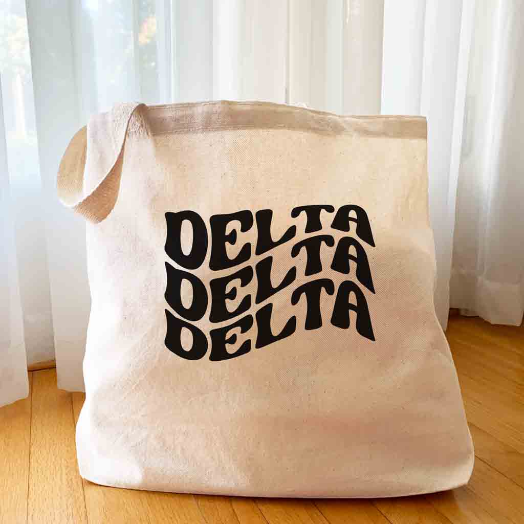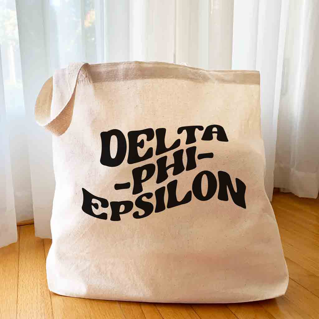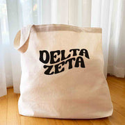 When you want to stand out, nothing makes a statement like our stylish sorority tote bag! Crafted from natural canvas, this eye-catching sorority tote features a fun retro mod design, 23" web canvas handles, a 10" handle drop, and a spacious bottom gusset. Whether you're heading to campus or out on a shopping spree, this tote bag is the perfect accessory for any occasion.