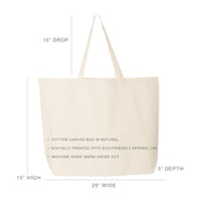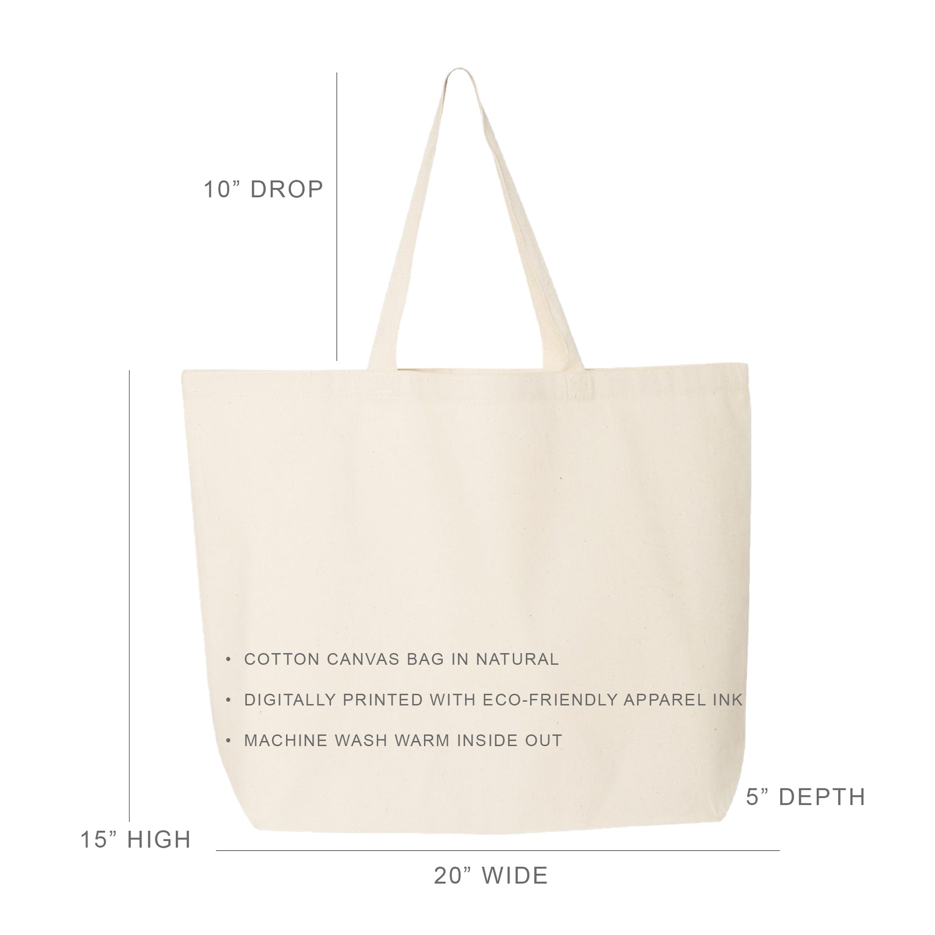 - Print-to-order in the USA using eco-friendly water based apparel inks digitally printed directly on the tote.