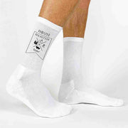 - The custom printing is hand processed in the US and the socks are imported and made to our specifications
