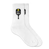 Time flies when playing pickleball ‘cuz it’s so much fun, and there is always time for “just one more”. This original design is printed on the outside of both the left and right crew socks.. This original design is printed on the outside of both the left and right crew socks.