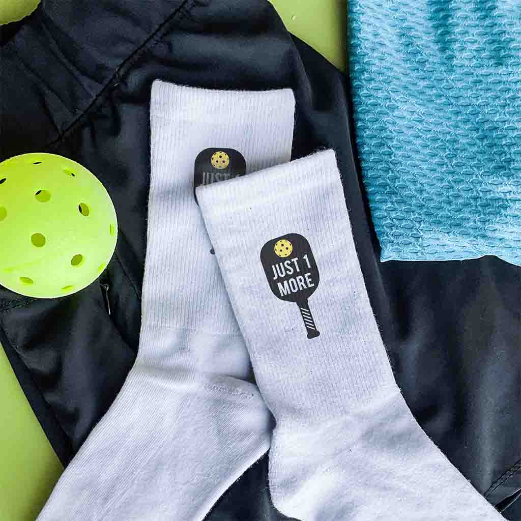 Just One More (Game) Pickleball Crew Socks for Him and Her