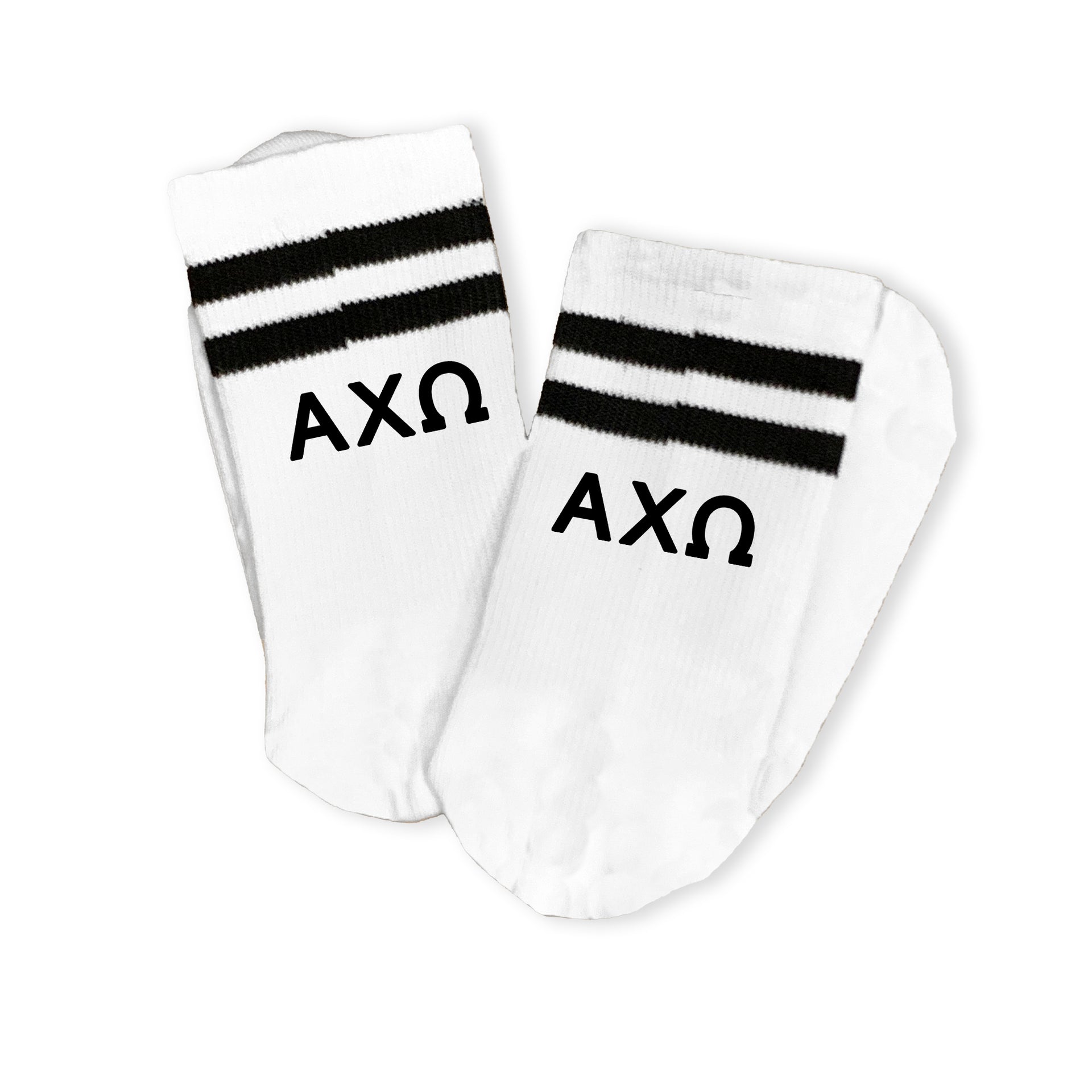 Alpha Chi Omega Sorority Letters on the Back of Striped Crew Socks