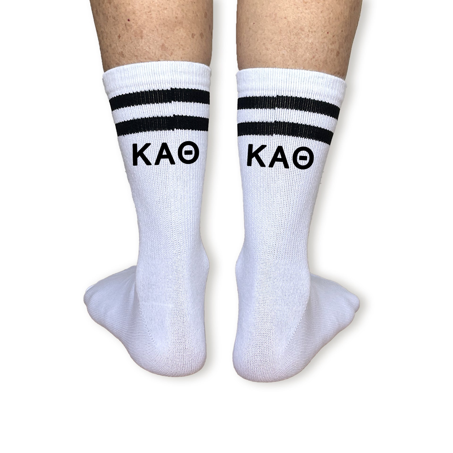 Kappa Alpha Theta Greek Letters on Striped Crew Socks